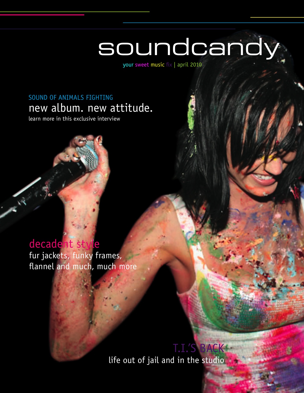 In working with part of a team, I developed a cover page, spreads and promotional pieces for a magazine geared toward trendy music lovers. Designing the magazine, Sound Candy, involved working with other team members to create pages that were diverse yet still part of a cohesive brand.