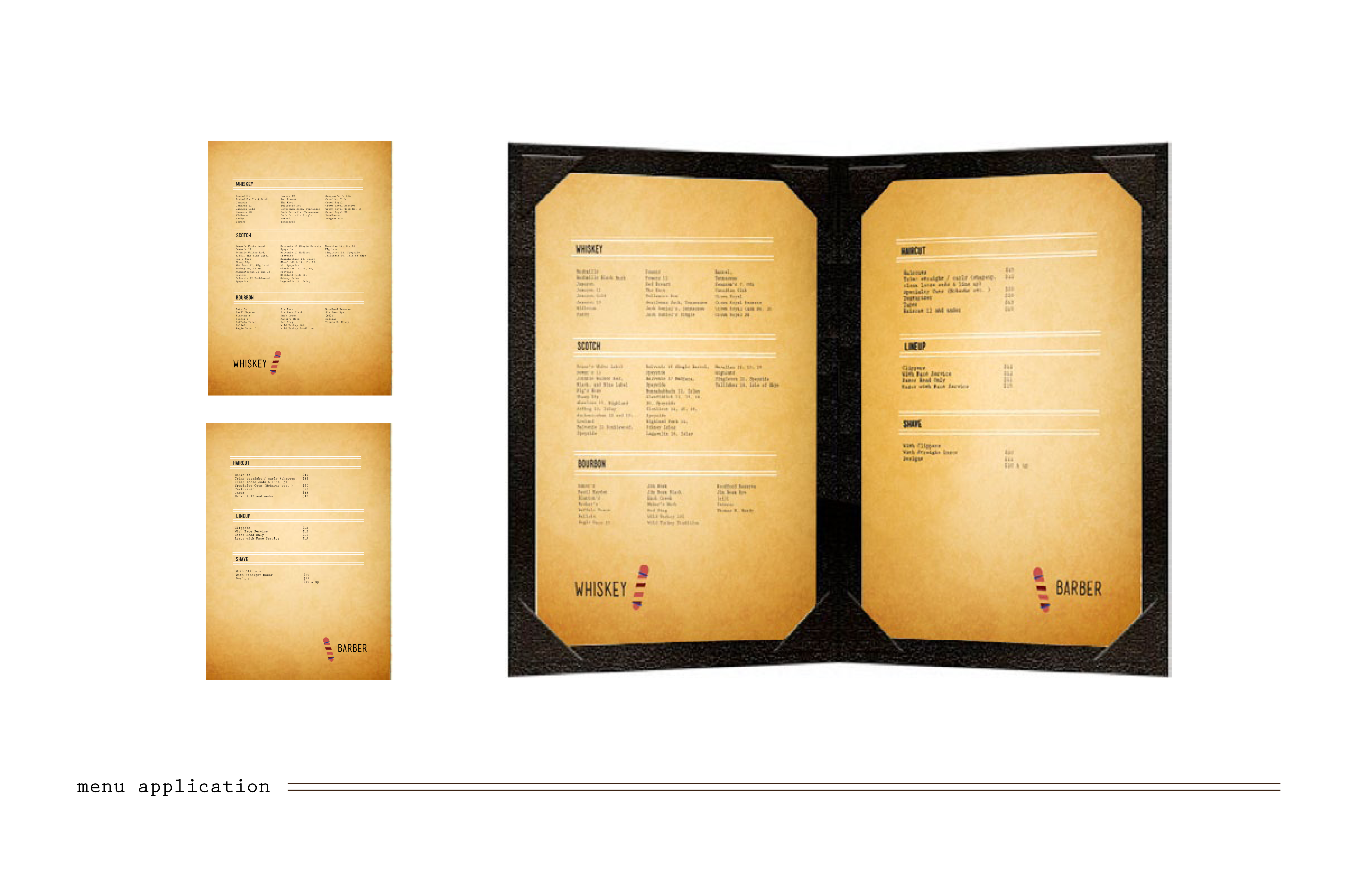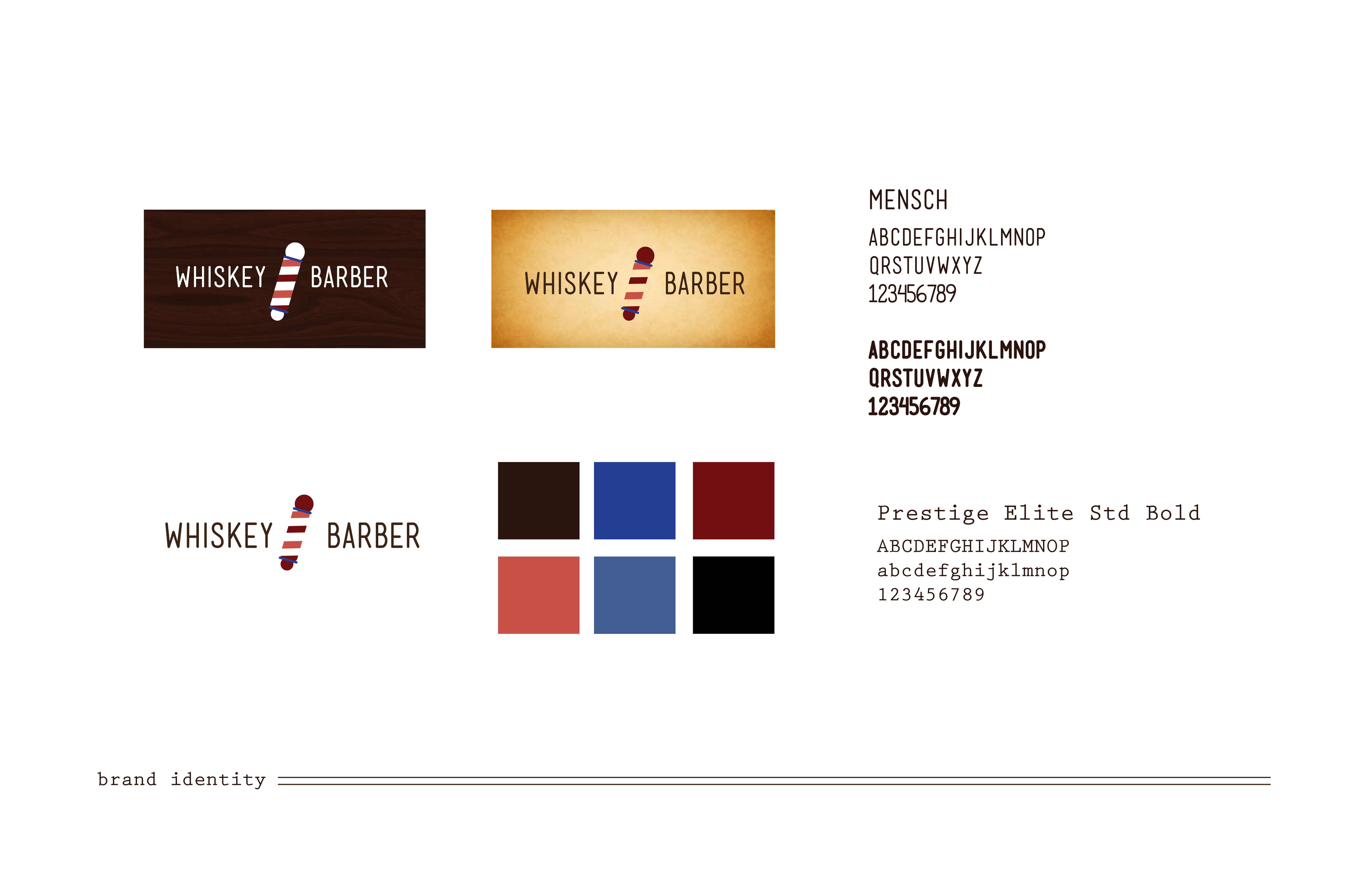 In coming up with a new entrepreneurial business idea, I developed the Whiskey Barber Shop. This shop would cater to individuals looking to get their haircut in a unique and upscale environment where they would be surrounded by an array of whiskey, bourbon and scotch. When designing this brand, I used neutral & deep colors as well as old school barbershop themes to compliment my desired outcome. I created promotional pieces, a dual menu with barber shop prices and whiskey prices, a store-front exterior and a customized aftershave gel meant to reflect the appearance of a whiskey nip.