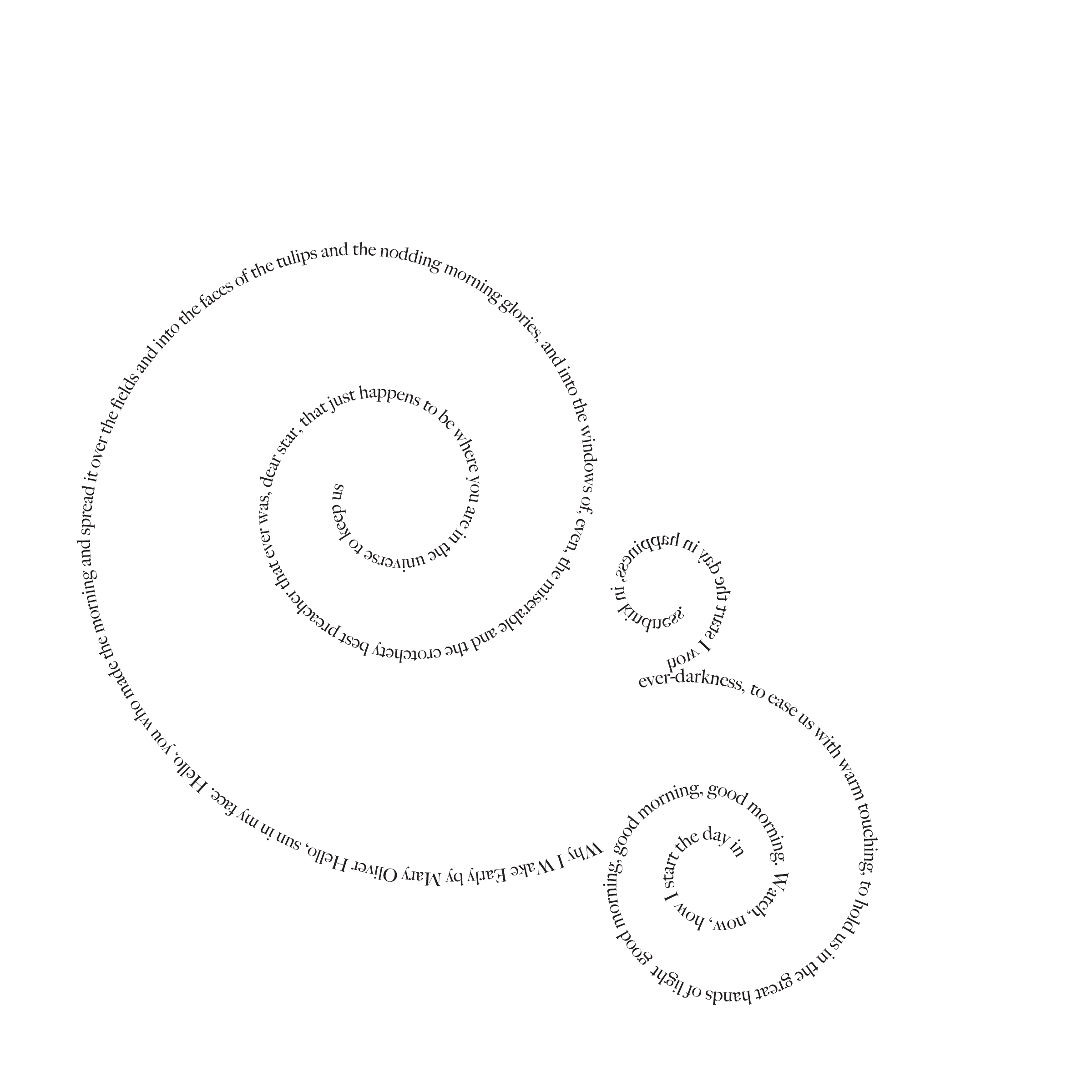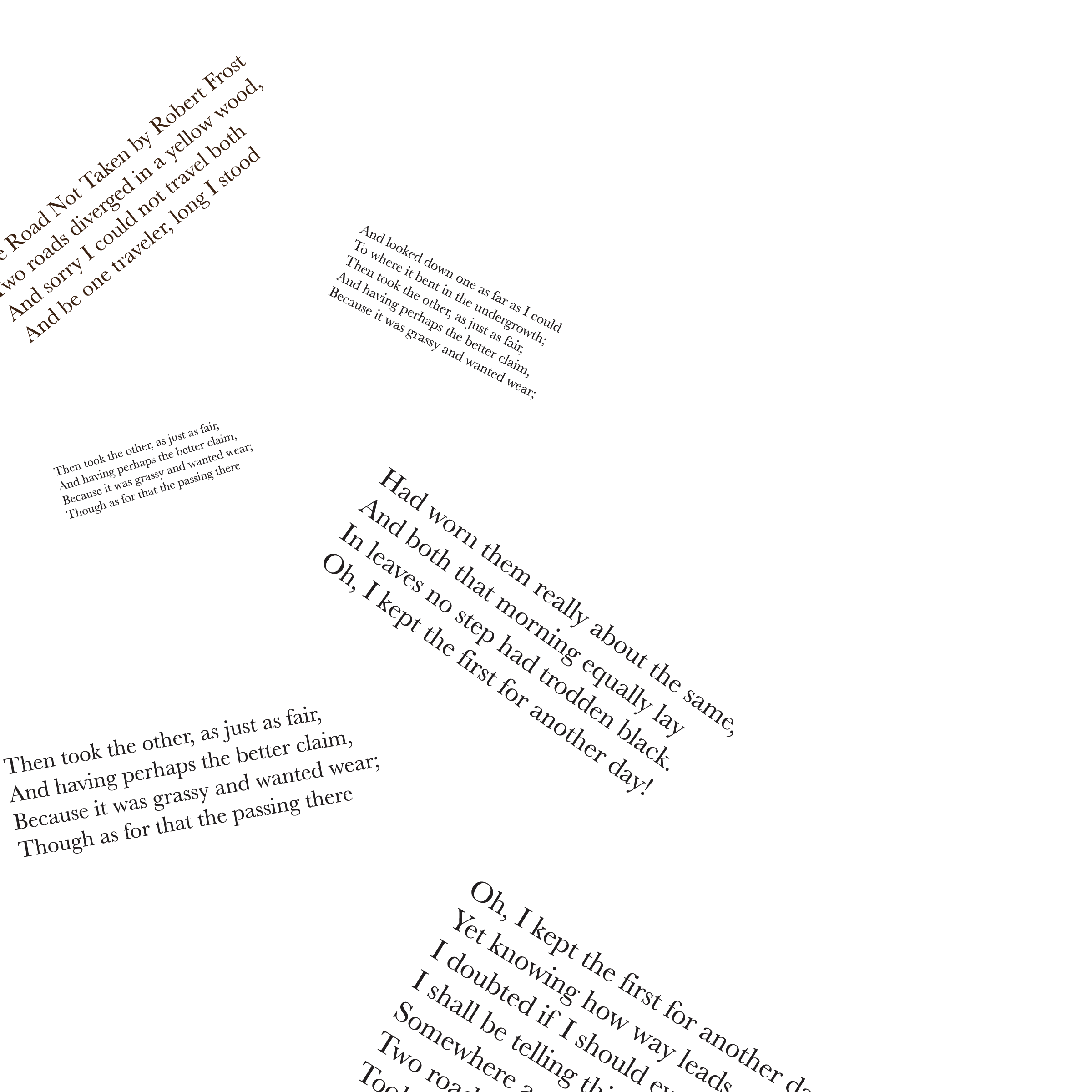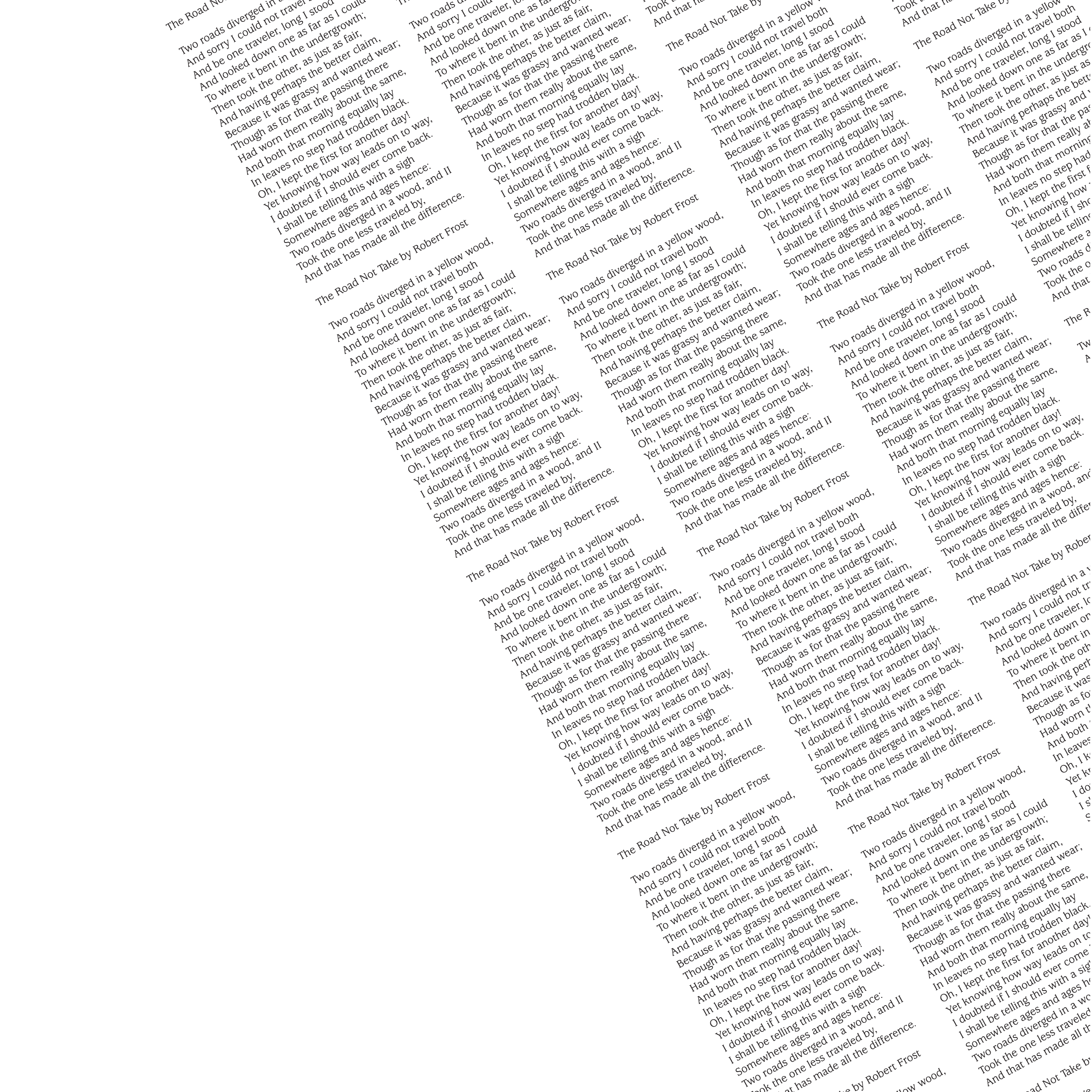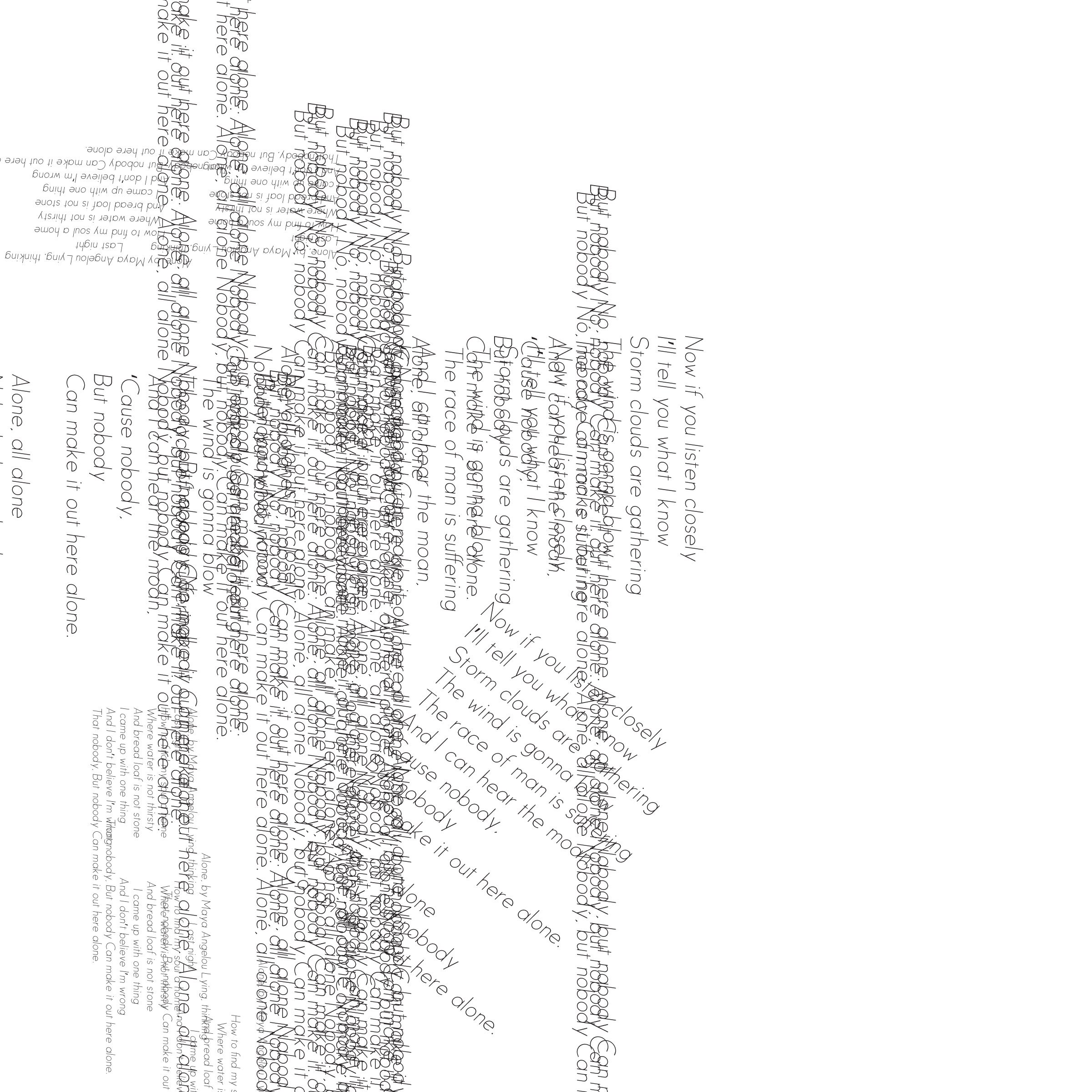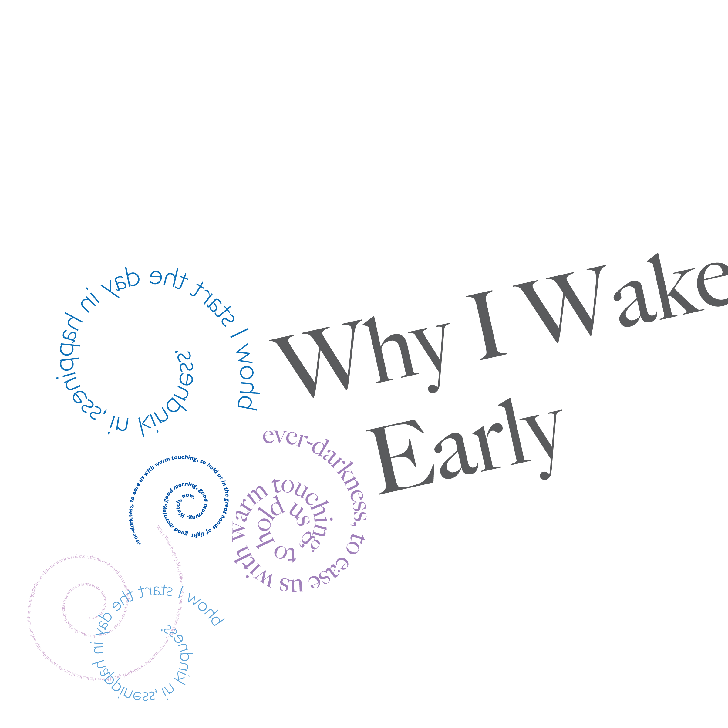 Throughout my courses studying Typography and Advanced Typography, I learned of six different approaches to type. They included: axial, transitional, random, dilatation, and radial layouts. I then went on to use American Poetry excerpts to explore the many potential outcomes that these systems can produce.