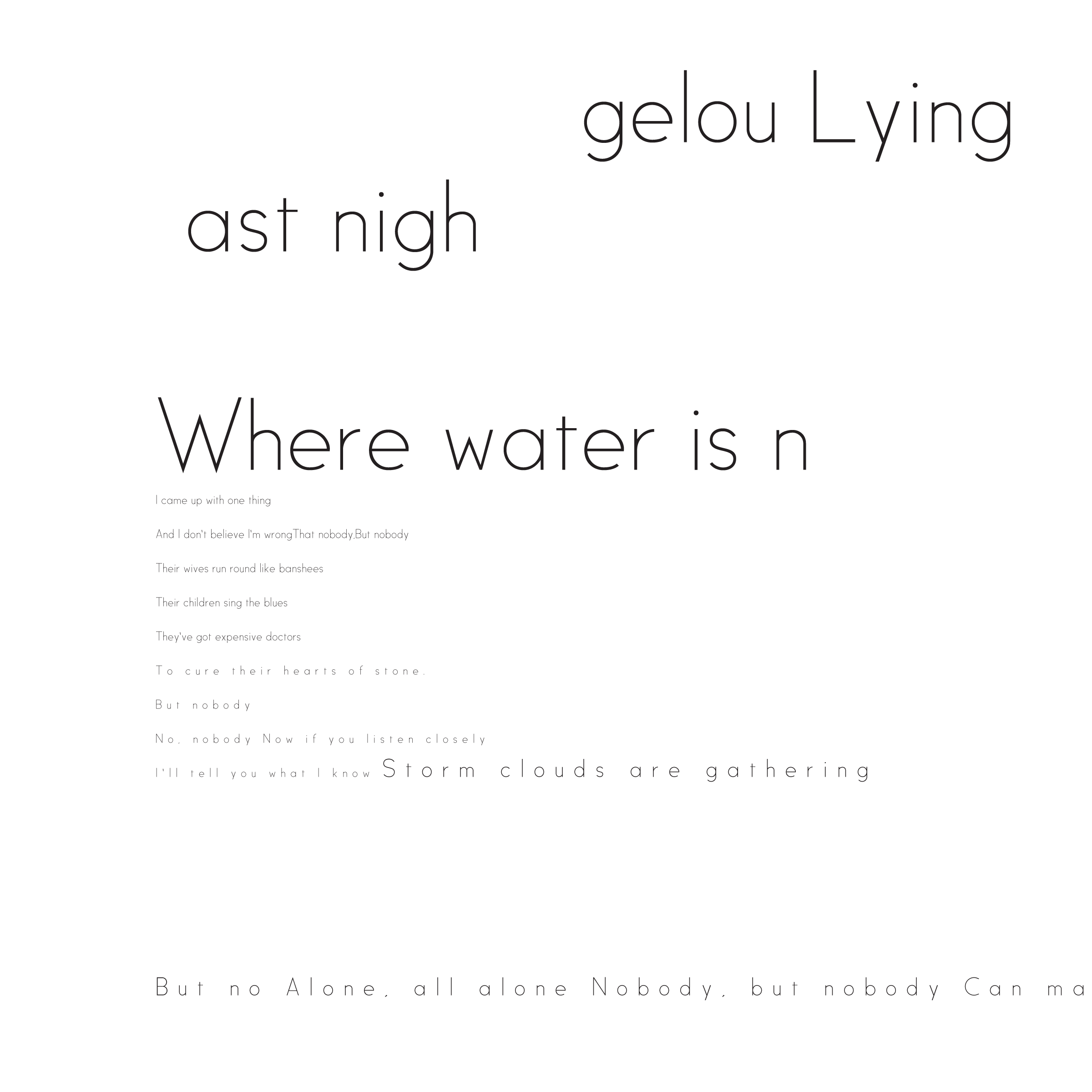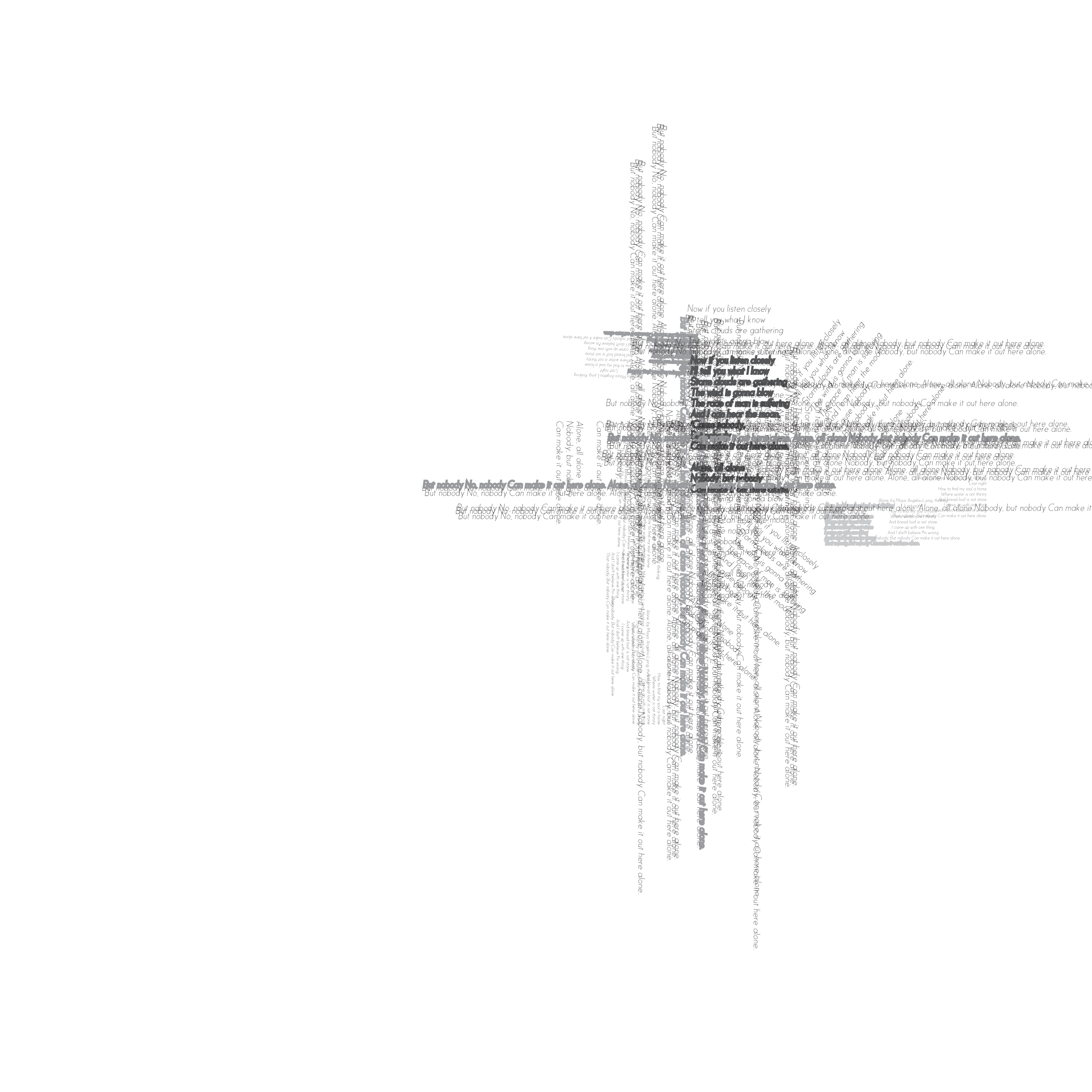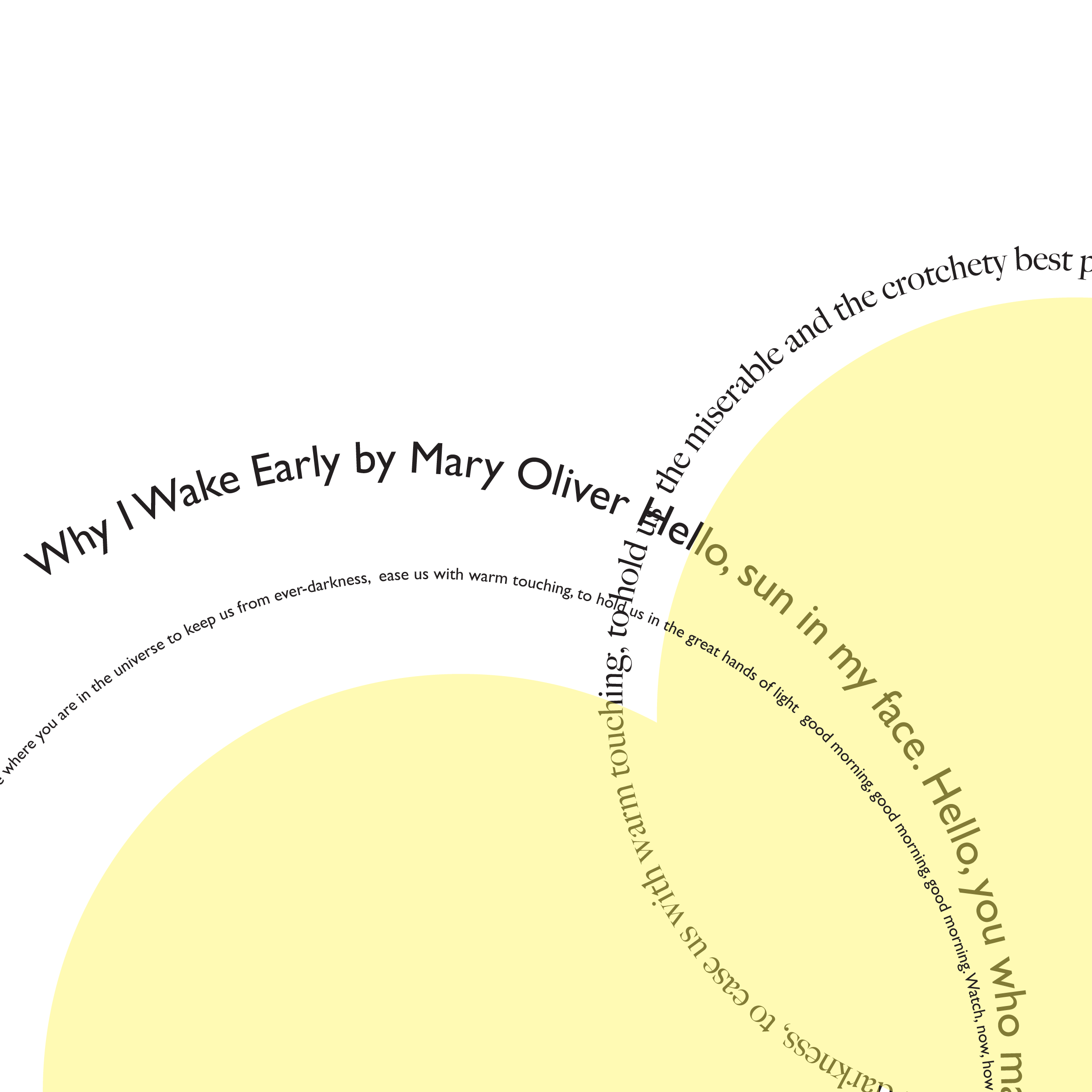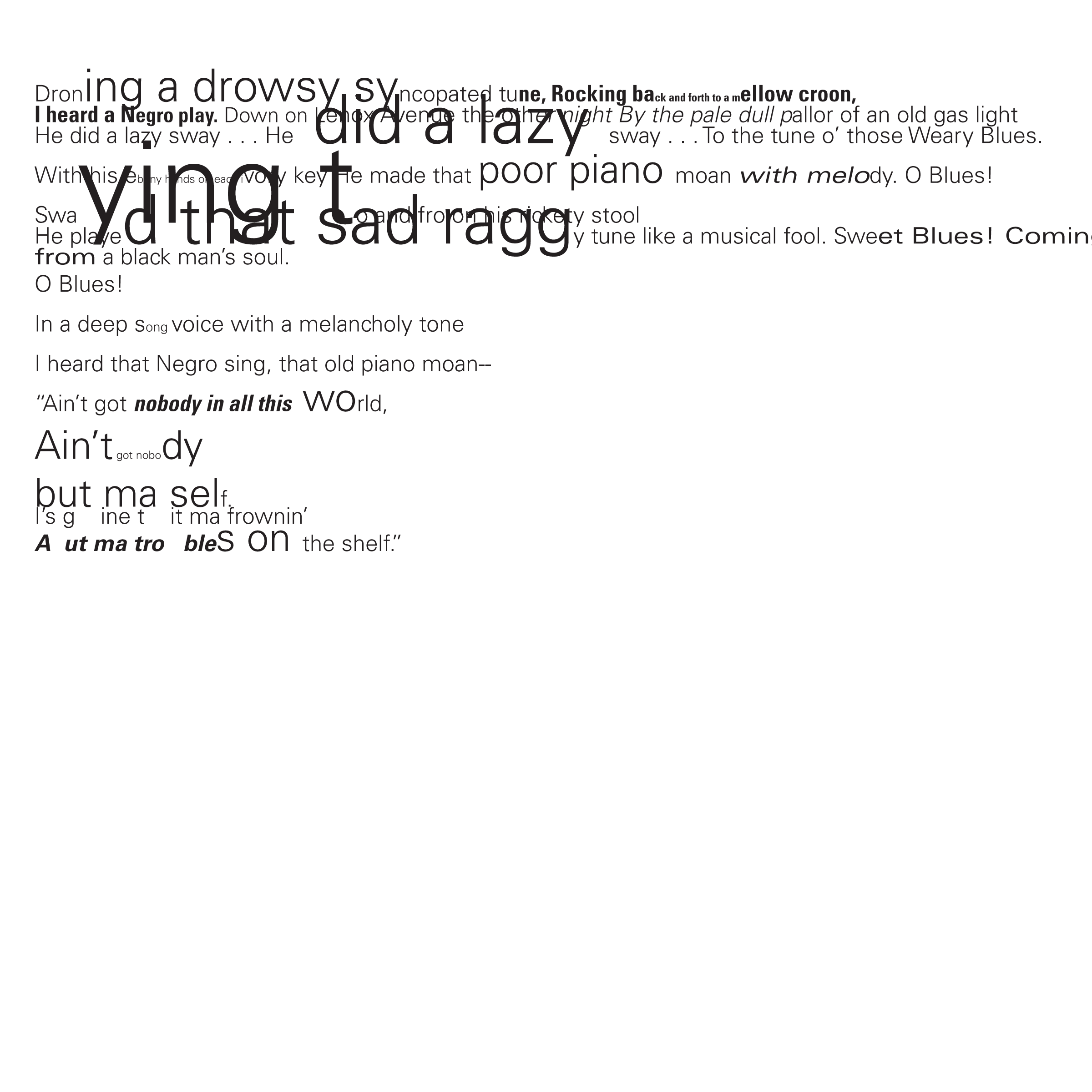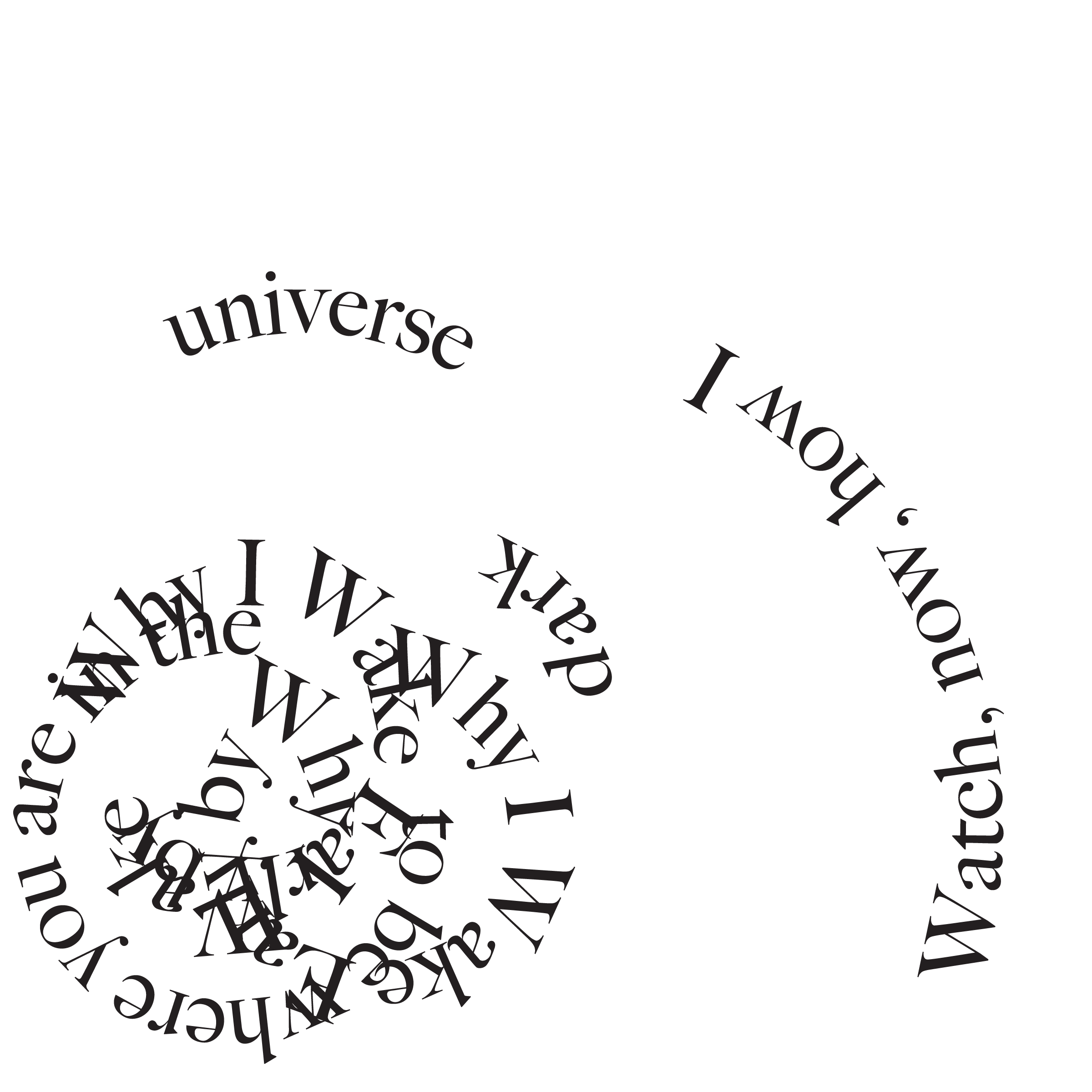 Throughout my courses studying Typography and Advanced Typography, I learned of six different approaches to type. They included: axial, transitional, random, dilatation, and radial layouts. I then went on to use American Poetry excerpts to explore the many potential outcomes that these systems can produce.