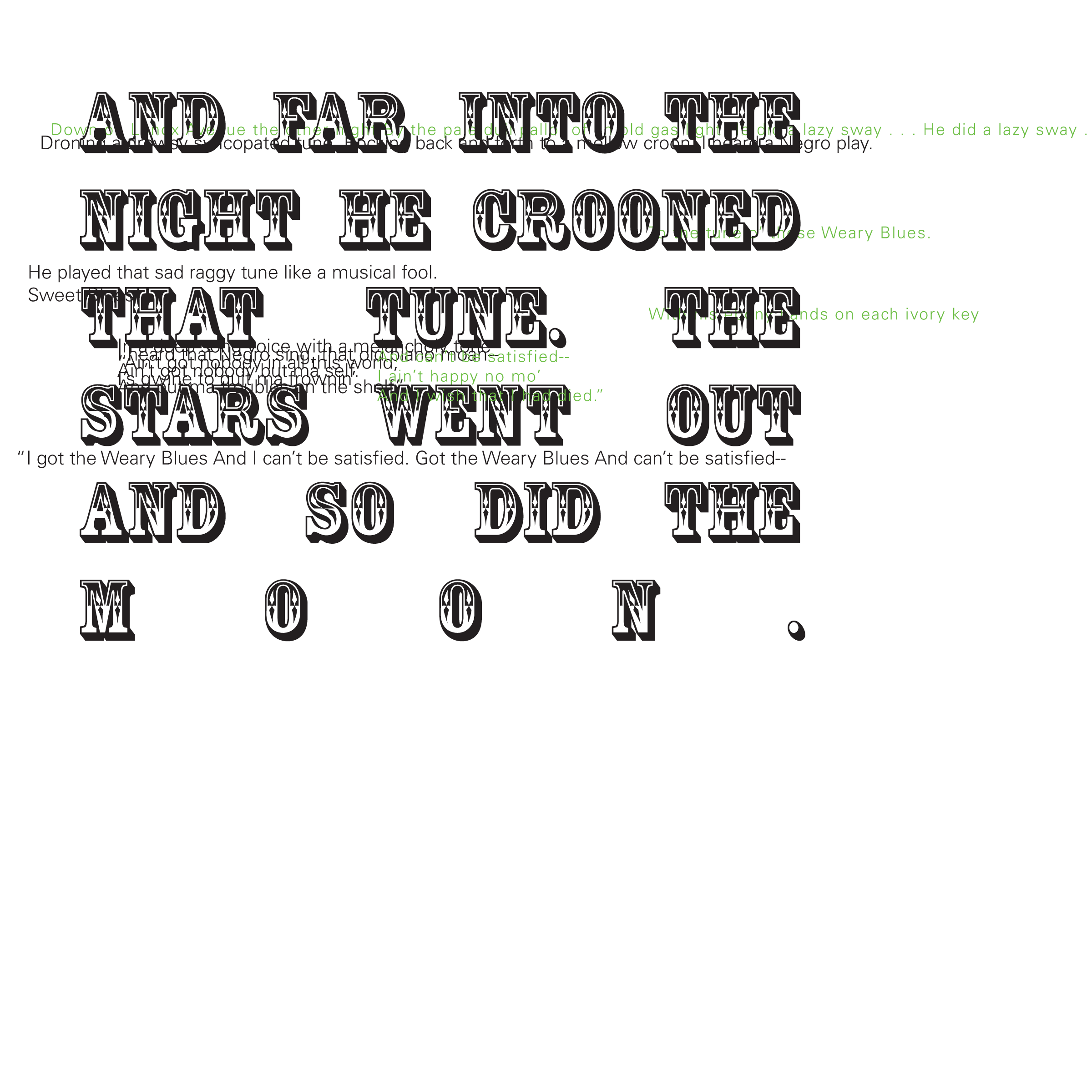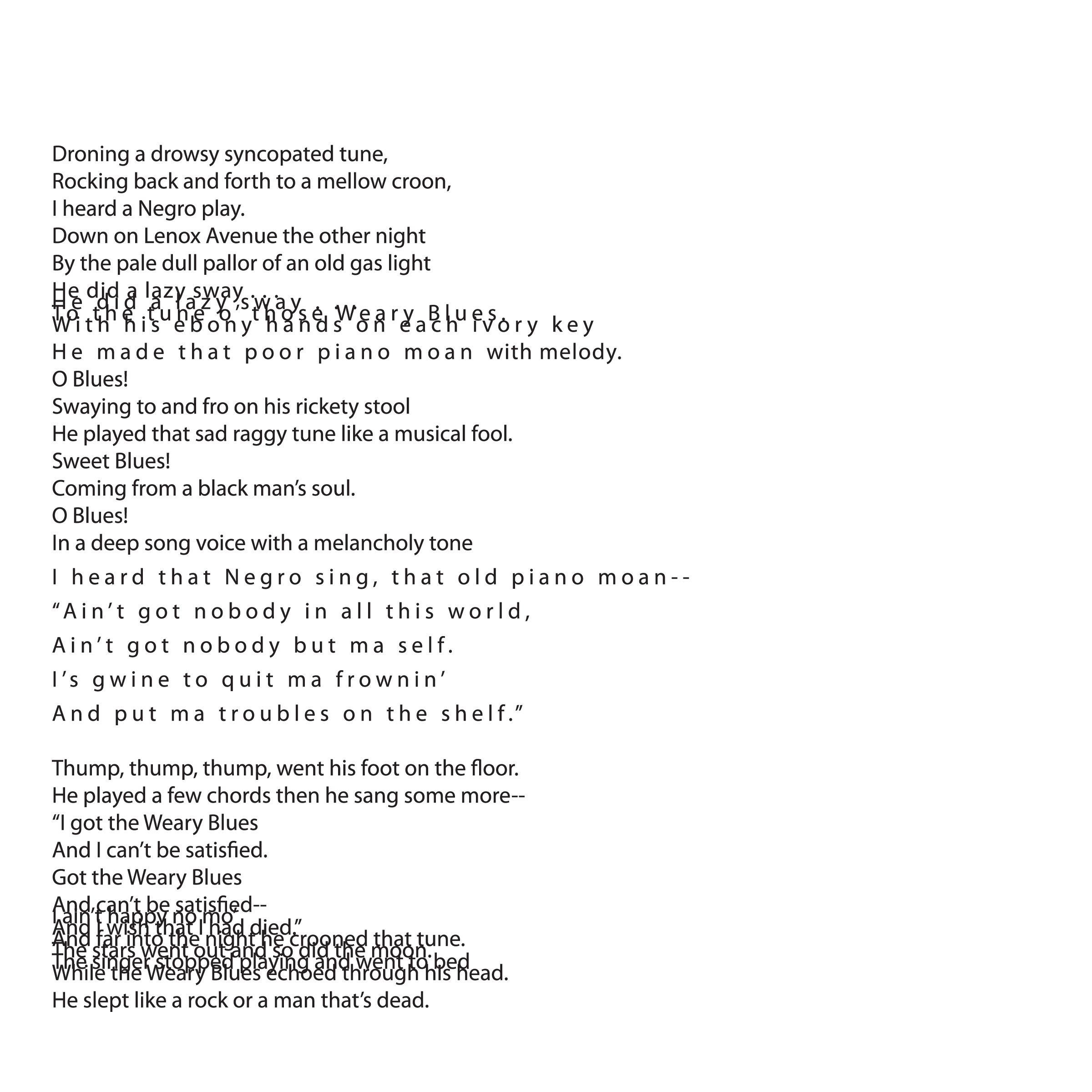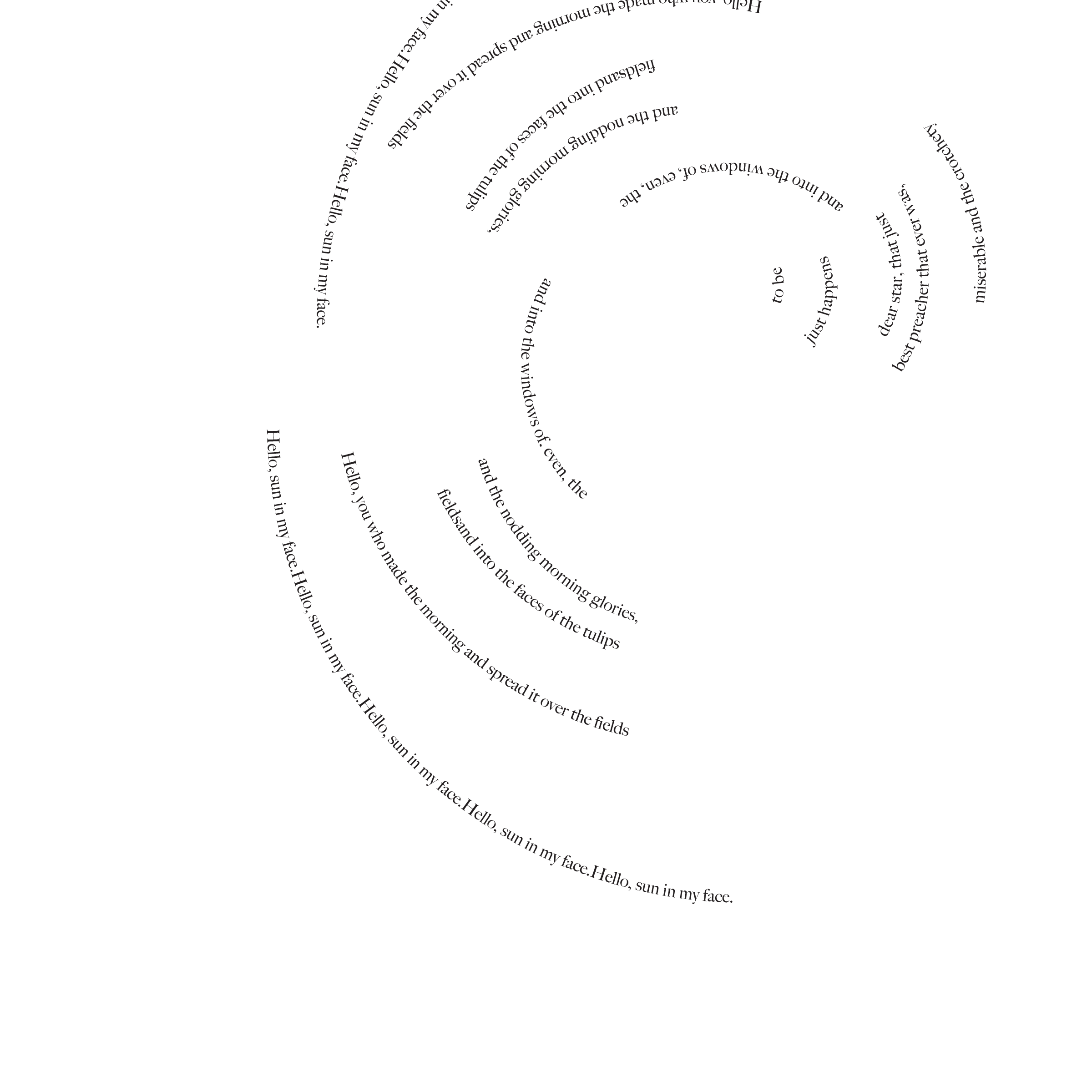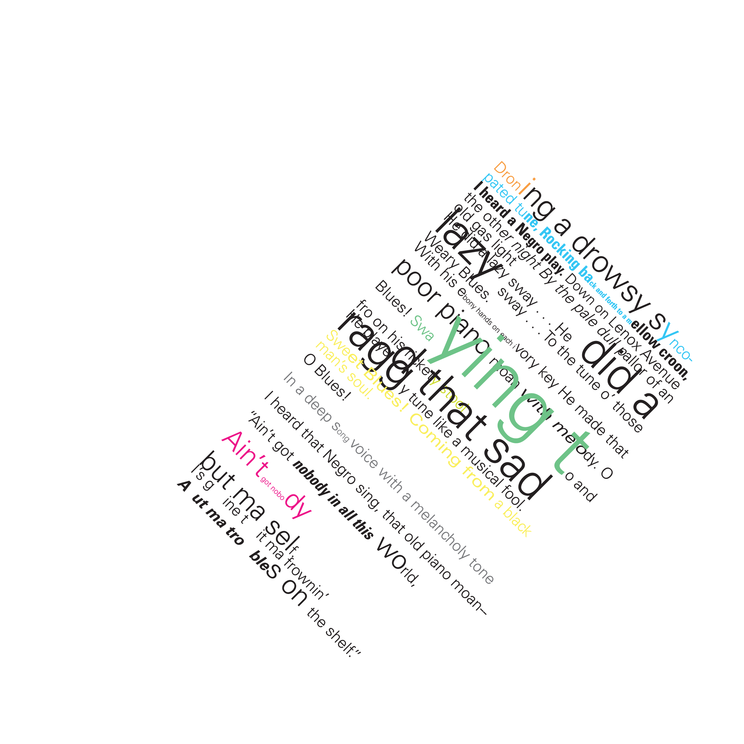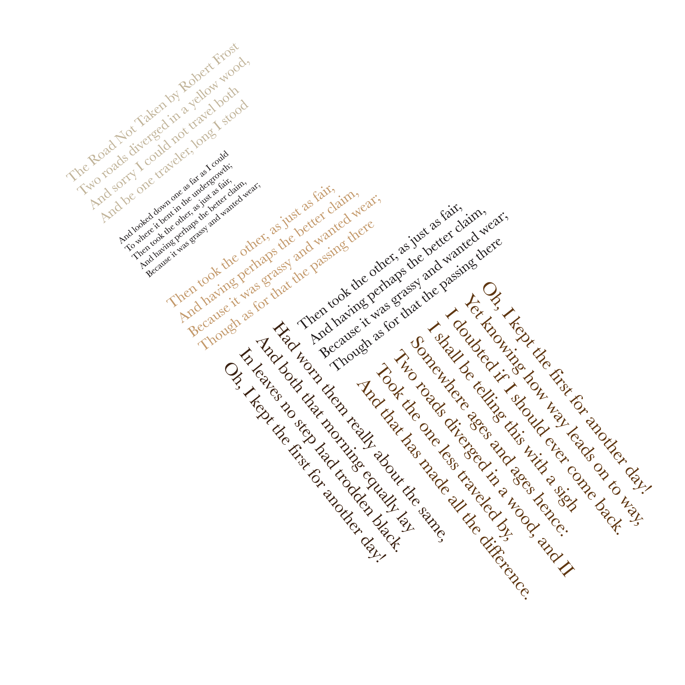 Throughout my courses studying Typography and Advanced Typography, I learned of six different approaches to type. They included: axial, transitional, random, dilatation, and radial layouts. I then went on to use American Poetry excerpts to explore the many potential outcomes that these systems can produce.